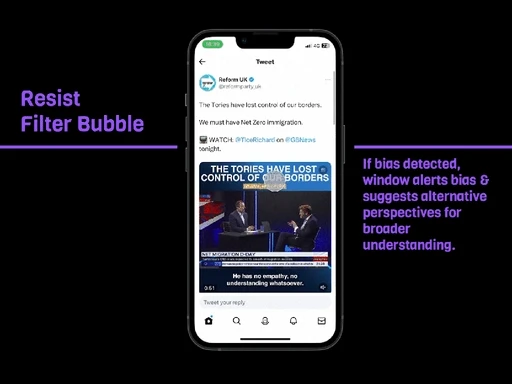 If bias is detected, the window alerts bias and suggests alternative perspectives for broader understanding.