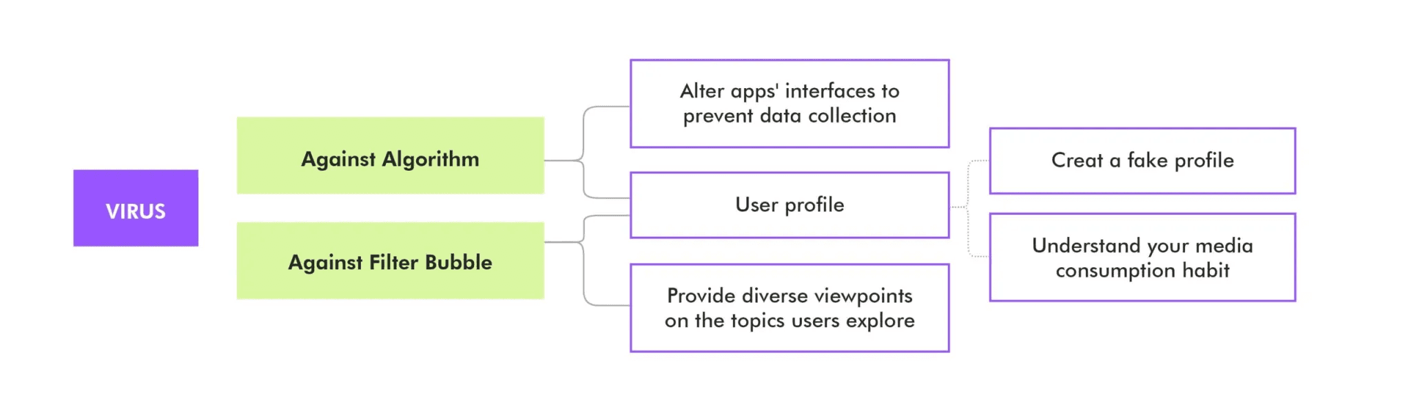 A virus that will prevent the platform from taking user's data and allow users to view the content from different perspectives.