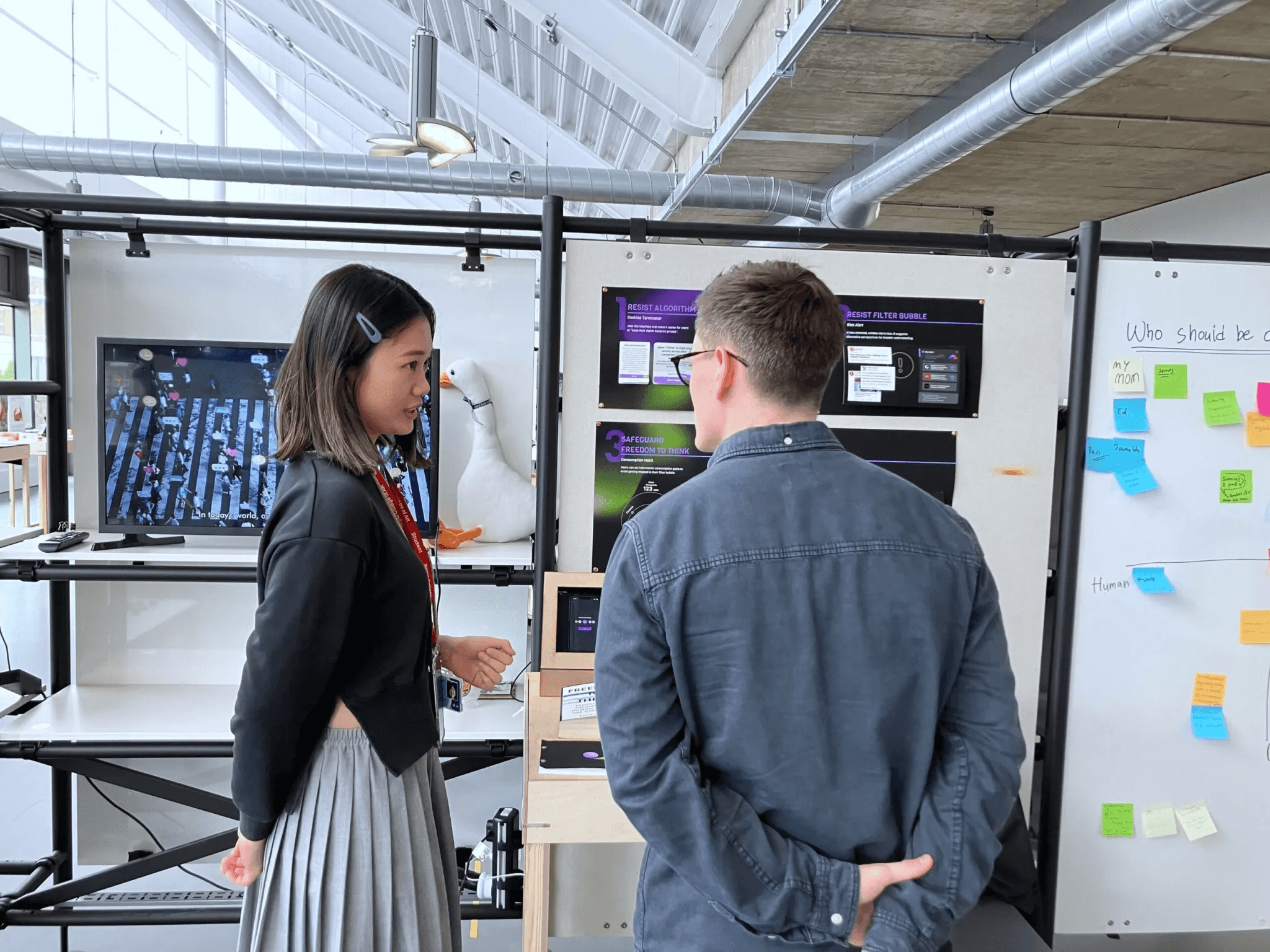 During our grad show, I presented my project to the audience. I received plenty of useful feedback through engaging conversations and opinions. People find this issue relevant and crucial, prompting them to actively discuss it. Some even inquired if it’s a “real app” that they can download as they expressed a genuine desire to use it.
